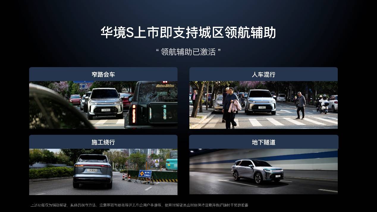 更重要的是,华境 S 拿出了 “上市即满配” 的硬核底气:上市即支持城区领航辅助(NCA)。这一举措,直接回击了行业内普遍存在的 “发布时遥遥领先,交付时功能阉割,升级时额外付费” 的潜规则。其能力不仅有严苛的实验室数据支撑,更通过了实打实的实战验证:在复杂城区的窄路会车、人车混行、施工绕行中,它都能从容应对;在 AutoLab 的极限测试里,130km/h 的高速遇突然静止的前车,它能稳稳刹停,70km/h 夜间突遇儿童 “鬼探头”,它能及时避险,110km/h 夜间连续避让路面障碍物,它能精准绕行。