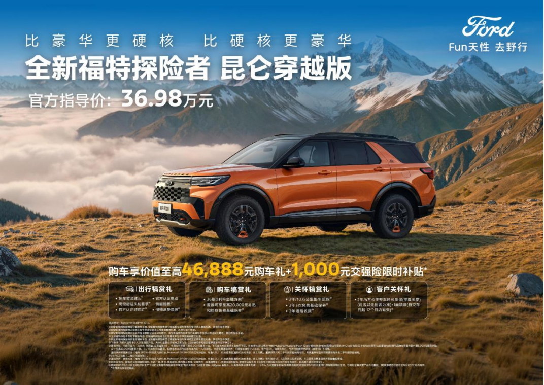 11月6日,全新福特探险者昆仑穿越版正式上市,官方指导价36.98万元。作为昆仑谱系全新成员,新车在延续昆仑谱系硬核性能基因的基础上,采用五座布局,打造近6平米纯平魔变空间,提升空间实用性。随着昆仑穿越版的加入,福特探险者昆仑谱系“越”力升级,不仅成为同级唯一提供5/6/7座多元布局的车型系列,更以全场景适配能力,成为长途穿越的“最优解”。昆仑谱系硬核大满贯 铸就全场景穿越底气传承福特112年造车经验,以及86年SUV技术沉淀打造的福特探险者,是站在公路性能和越野性能C位的一款全球旗舰SUV。昆仑谱系更是凭借大满贯级的硬核实力,成为史上最强的探险者系列车型,拥有“全场景穿越”的产品实力。福特探险者昆仑谱系产自CD6纵置后驱百万豪车架构,拥有比肩豪华车的硬核底气;搭载系出名门动力传奇,“沃德十佳”2.3T+10AT黄金动力组合,289马力,213千瓦最大功率和445牛·米峰值扭矩的强劲输出,为全域路况提供充沛动力储备;具备百年的底盘素养,智能四驱+TMS地形管理系统、双球节前悬架+H臂整体多连杆后悬架,再加上专属越野调校,赛道级操控基因全场景穿越无忧;更有性能满格的硬核配置——纯机械结构托森®B型限滑后差速器+全地形轮胎+专属高强度金属材质底盘装甲+同级唯一标配越野前双拖车钩负重3吨+同级唯一带盲点监测和摇摆控制2.1吨原厂拖挂,使车辆具备优越的长途穿越能力,所到之处皆坦途,是可上昆仑的“公路之王”。昆仑穿越版传承硬核基因,五座布局聚焦实用储物空间在完整继承昆仑谱系硬核基因的基础上,福特探险者昆仑穿越版从用户出行需求出发,为户外探索爱好者提供了更为多元的硬核穿越选择。五座布局的全新设计,直击户外探索中的储物痛点。后备箱空间是昆仑穿越版的突出优势。常规状态下容积达1505L,第二排放倒后更可扩展至2487L,能够轻松容纳雪板、自行车、露营装备等大件物品。精细化储物设计包括新增置物板下隐藏储物盒,拓展近100L储存空间,后备箱储物格多达15个,最里层配有可移动挡板,实现灵活的物品管理,让各类户外装备都能有序收纳,创造了真正意义上的“魔变空间”。全场景解决方案,昆仑谱系直面用户核心痛点户外探索总是伴随着诸多挑战:长途驾驶带来的身体疲惫、装备繁多而收纳空间有限的窘迫、偏远地区能源补给的不便,以及复杂路况对车辆通过性的严苛要求。这些现实难题往往让探索之旅打了折扣。实现“车型大满贯”的昆仑谱系深刻洞察户外长途穿越的用户痛点,提供了全方位的解决方案。面对长途驾驶的疲劳困扰,昆仑谱系给出了自己的答案。人体工学座椅配合精准调校的底盘系统,能够有效过滤路面颠簸,再加上座椅按摩功能,让驾乘舒适性得到显著提升,使长途行车不再是负担。对于物品收纳与休憩空间有限的现实问题,昆仑穿越版提供了完美解决方案。1505L的基础储物空间配合可纯平放倒的二排座椅,既能轻松容纳滑雪板、自行车等大件装备,又能瞬间变身为1.8米的舒适大床,让户外休憩变得简单从容。偏远地区能源补给不便的顾虑,在81L超大油箱和92号汽油广泛适应性的双重保障下烟消云散。超长续航里程让探险者可以深入更偏远的地区,无需担心补给问题。而复杂路况的通行挑战在昆仑谱系面前同样迎刃而解。TMS六模智四系统覆盖六大驾驶模式,配合223mm离地间隙和全地形轮胎,无论是砂石路面还是湿滑路段,都能确保车辆稳健通过。从城市到荒野,从公路到险径,探险者昆仑谱系以全方位的技术实力,让探索者能够专注于享受旅程本身,而非困扰于路途中的种种难题。昆仑穿越版的加入,使福特探险者昆仑谱系的产品矩阵更加完善,能够更好地满足不同用户群体的多样化需求。从昆仑巅峰版的“硬核之上更豪华”到昆仑穿越版的“硬核穿越无忧选择”,这种差异化的产品定位,体现了福特对户外探索需求的深度洞察,从长途旅行到专业越野探险,用户都能在昆仑谱系中找到最适合的车型。