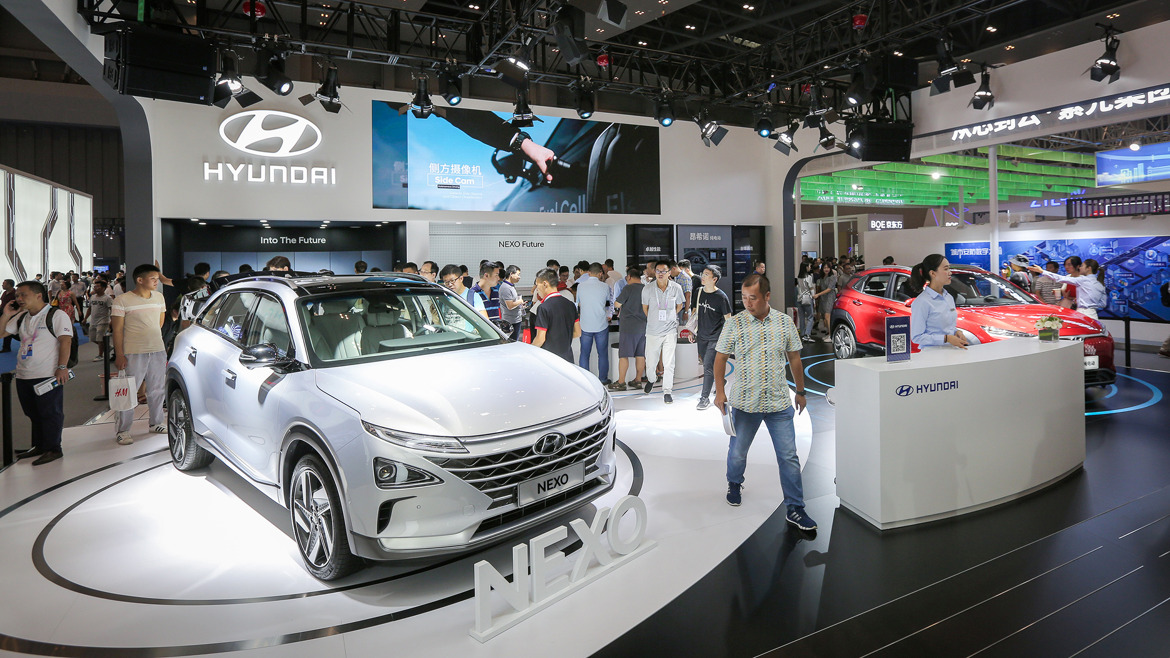 2019年8月26日,重庆。由科技部、工信部、中国科学院、中国工程院、中国科学技术协会和重庆市人民政府共同主办,以“智能化:为经济赋能,为生活添彩”为主题的2019中国国际智能产业博览会(以下简称“智博会”),在重庆国际博览中心隆重开幕。这是现代汽车连续第二年参加智博会,同时也是继今年6月亚洲消费电子展后,再度展示现代汽车Mobility战略的重要舞台。围绕氢燃料电池技术、氢能电动车技术和cleanmobility战略,现代汽车全面展示其在氢能开发领域的新技术以及未来创新战略,揭示作为智能移动解决方案供应商,所构建的“未来氢社会”愿景。同时,借助NEXO和北京现代首款纯电动SUV昂希诺纯电动,现代汽车致力于在广大消费者面前充分展示其在新能源技术智能化应用、智能安全驾驶辅助系统开发和利用方面的创新优势,以智慧科技赋能未来移动出行。 现代汽车2019中国国际智能产业博览会展台领先科技赋能凸显现代汽车新能源开发核心优势本届智博会期间,现代汽车以新一代氢燃料电池车NEXO和昂希诺纯电动为核心,结合展示模型与互动视屏,全景展示未来移动生活场景,和通过氢能技术构建的绿色、环保、健康的“未来氢社会”。其中,新一代氢燃料电池车NEXO是当之无愧的展台焦点。它搭载了现代汽车研发的第四代氢燃料电池,不仅荣获“2018年E-NCAP年度最佳大型越野车”称号,还被美国非盈利汽车安全研究机构——公路安全保险协会(IIHS)评为“顶级安全车+”,成为首款荣获全球最高级别安全认证的氢燃料电池车。NEXO采用空气箔片轴承式空气压缩机和无氢气循环泵等尖端科技,电池堆、电机以及氢燃料电池的BOP等组成的核心部件,可令整个系统达到60%的高效率。它充满一次燃料,最长续航里程可以达到800公里(NEDC工况下)。其最大功率可达120kW,并且可实现-30℃的冷启动,整个系统耐用性可达10年/16万公里。另外,NEXO不仅实现了零排放、零污染,其核心系统更是具有强劲的空气净化作用,颗粒物、细粉尘和空气污染物的净化能力高达99%,被称为“道路上的吸尘器”。 现代汽车氢燃料电池车NEXO而除了氢燃料电池方面的技术优势,NEXO还拥有一项名为VoiceCurtain的“黑科技”:通过安装在后座的MIC接收后排乘客的说话声,利用控制器生成相似频率的声音,再通过前排座椅头枕上的特殊音响播放掩盖声,令前排驾驶者听不到后方乘客的说话内容。以此实现声音空间上的分离,确保后排乘客的对话隐私。 公众参观NEXO值得一提的是,NEXO作为未来“氢”生活蓝图的核心,充分展现了其在未来社会出行和生活中的关键地位。为了让更多中国消费者感受到“未来氢社会”愿景,现代汽车特意将“氢”生活蓝图“移植”到了智博会舞台。而在Into the future展示区,观众通过观看视频,能够虚拟体验NEXO带来的未来氢生活场景:落座后,跟随NEXO行驶于未来城市街区,藉由车辆强大的空气净化能力,消除城市上空的雾霾;当能源不足,可在加氢站补充氢燃料;当车辆停放在停车场,可利用e-Scooter到达目的地;回到家中,更可以为整栋房屋提供能源。 现代汽车Into The Future展台此外,观众还可通过现场演示道具,充分了解现代汽车燃料电池技术原理和环保特性。为提升互动性,观众还可参与到NEXO Future互动游戏中,看视频,完成NEXO Water竞猜游戏并获得小礼品。 三大互动展区:IntoTheFuture、NEXOFuture、氢燃料科学教室工作人员向公众展示氢燃料电池工作原理综合续航500公里智慧科技打造纯电出行除NEXO外,现代展台另一大焦点,是即将于今年下半年正式在中国上市的北京现代首款纯电动SUV昂希诺纯电动,它是现代汽车智能科技的最新典范。首先,昂希诺纯电动搭载ADAS智能辅助驾驶系统和智能网联2.0系统的装备,将进一步提升昂希诺纯电动的智慧属性。其中,ADAS智能辅助驾驶系统包括FCA前碰撞预警制动系统、LKA车道偏离警示干预系统、LFA车道保持系统、RCCW后方交叉碰撞预警系统等智能辅助功能,为驾乘者构建起更加智能、便捷、安全的出行体验。配备的智能网联2.0系统,可进行场景化语音交互、智能语音控制等功能。其中,在线OTA升级技术可及时更新、持续优化车内系统,使车主感受到最新智能驾驶体验。更拥有Door to Door功能,实现手机与车机导航无缝衔接。其次,昂希诺纯电动的核心三电系统,更是现代汽车智慧科技的结晶。其核心动力电池采用宁德时代提供的高品质三元锂电池组,电池容量达到64.2kWh,最大输出功率可达150kw,峰值扭矩310牛·米。满电情况下,NEDC综合工况纯电动续航里程可达500公里。而它的高电压电驱系统集电机、变频器与减速器于一身,重量仅为76.9千克。电池组采用水循环冷却系统,不仅在夏季高温时,可有效提升电池散热能力,更可通过PTC(水暖加热器)以3kW的功率为水循环系统加热,从而确保电池的正常工作温度,使车辆能够在-30℃极低温环境下正常冷启动。 北京现代首款全球品质酷玩纯电SUV昂希诺纯电动在驾驶方面,昂希诺纯电动提供舒适、运动、经济、超经济等四种驾驶模式,并采用再生制动换挡拨片,可提供多种力度能量回收能力,将有效提升车辆行驶过程中的能耗效率。60km/h等速状态续航里程最长可达到625公里。最后,昂希诺纯电动还拥有未来风潮的造型设计。外观兼具环保、科技、未来感等多项潮流元素,内饰采用诸如专属7英寸TFT LCD全彩仪表盘、SBW电子换挡区域、10.