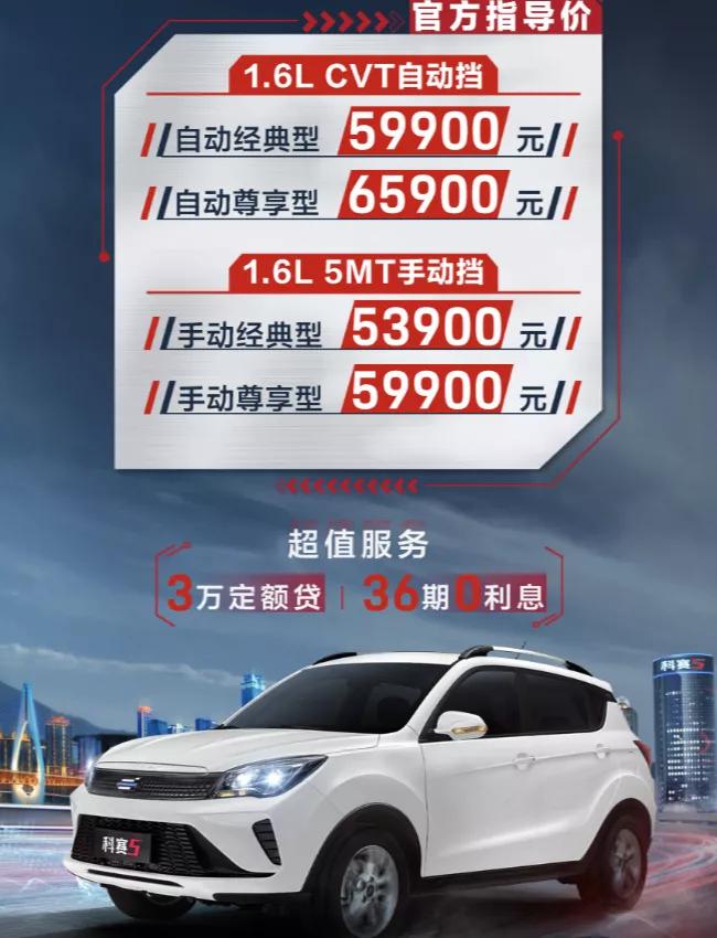 那么今天,蜀锦将谈谈一款刚上市的SUV汽车——长安欧尚2021款科赛5,售价区间为5.39万-6.59万元,它出现的目的可以说是为了让每个消费者都能买得起。为何这么说,因为在它足够低的售价上还提供了超实惠的贷款政策,三万定额贷可享36期0息,意味着最低2.39万元可以贷款手动挡版本,如果首付提供2.99万元,那么仅需月供833元就能购买自动挡版本,平均一天的月供花费仅为27元。