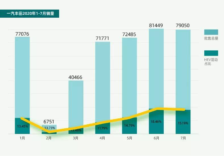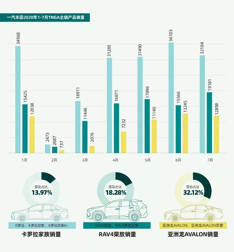 在刚刚过去的7月,一汽丰田销量达到了79050辆,同比增幅高达40%;1-7月累计销量达到43万辆,同比增长0.8%,市场份额占比提升至4.7%。