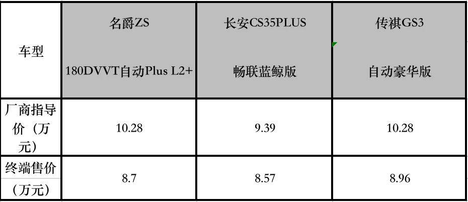 质价比较高的小型SUV市场有三大热门选手,分别是名爵ZS、长安CS35 PLUS、传祺GS3,在这三款车型中纠结的消费者并不少。因此,蜀锦用名爵ZS 180DVVT自动Plus L2+、长安CS35 PLUS畅联蓝鲸版、传祺GS3自动豪华版进行对比,虽然名爵ZS与长安CS35 PLUS的官方售价更高,但是终端优惠后三款车型皆迈入了8万元级别,也算是同价位的公平对比。