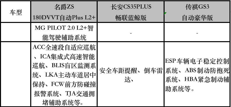 在消费者日渐关注当下汽车配置主流的智能安全方面,名爵表现一直很突出。名爵ZS也以同级领先的L2智能驾驶系统,实现了更高水准的守护,树立了8万级SUV的“智驾”标杆,传祺GS3和长安CS35PLUS则逊色许多。