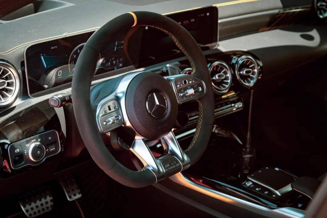 除了比35系列更竞技化的AMG一体式运动座椅,A 45 S在车内少了几分专属感。消失的苹果树挡把是A 45 S的一大遗憾,在每次起步挂档的时的那份专属感和仪式感,会更让我想念上一代45车型。