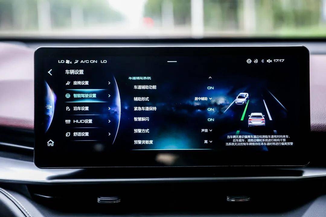 此外,HUD上能够显示出车辆在道路标线的位置,并且实时识别,虚线与实线能够及时的更新。