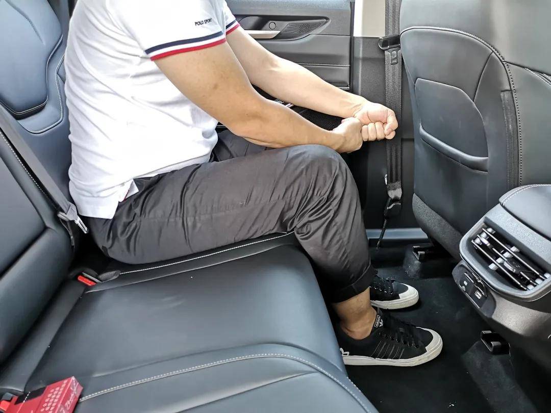 乘坐空间方面,主驾座椅调整至合适位置,175cm乘客后排腿部空间接近三拳,头顶空间为一拳两指,在同级别中处于第一梯队。