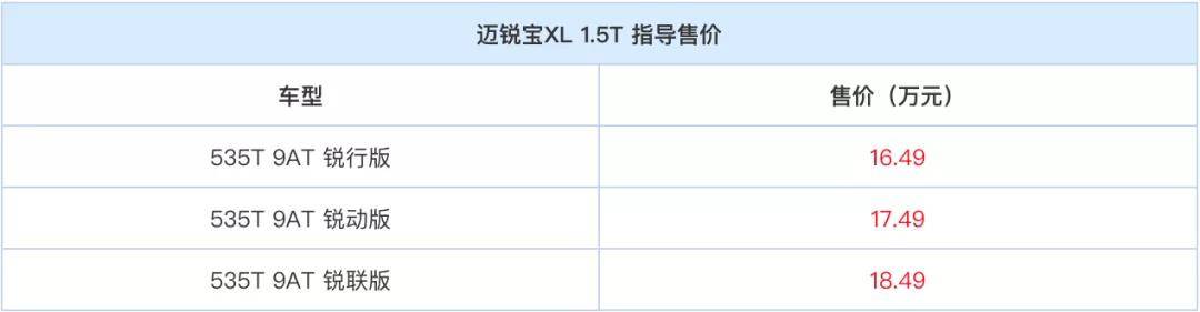 迈锐宝XL 535T车型上市,新车搭载1.5T四缸发动机,共推出3款车型,售价区间为16.49-18.49万元。新车搭载1.5T四缸涡轮增压发动机,最大功率为169马力,最大扭矩为250牛·米,并满足国六排放标准。传动系统方面新车均匹配9速手自一体变速箱。