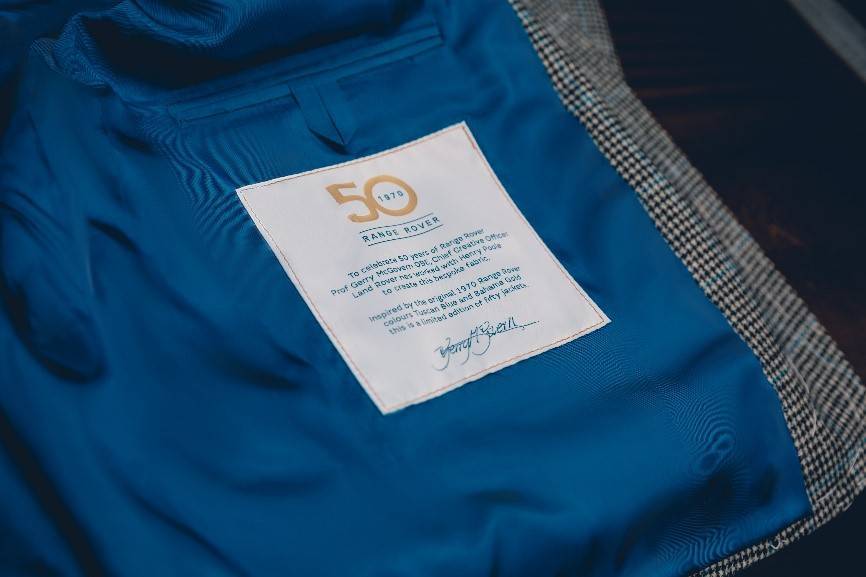 英国惠特利,2020年8月——为了庆祝揽胜诞生50周年,路虎首席创意官哲芮勋先生与英国老牌顶级手工西装定制的代表品牌Henry Poole & Co携手打造50套定制休闲西装。