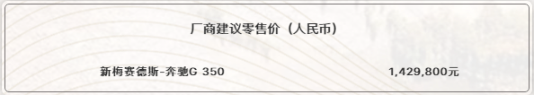 新G 350装备的2.0升直列四缸涡轮增压发动机,拥有190千瓦(258马力)的最大功率和370牛·米的最大扭矩,匹配反应敏捷的9速自动变速箱,可以在8.1秒内完成百公里加速。更加环保的M264发动机不仅通过汽油微粒滤清器有效降低微小烟尘微粒的排放,还能精准控制发动机增压值并且有效改善发动机动力响应,更凭借源于AMG F1方程式赛车Eco-Tough活塞环涂层技术进一步减少损耗。新G 350的综合油耗为10.7升/百公里,二氧化碳排放量则为254克/公里,顺应了日益严格的节能减排趋势。当驾驶者通过操控选择(DYNAMIC SELECT)来设置舒适模式、运动模式、节能模式或个性化模式,系统会改变发动机、变速箱、悬架、转向机构和辅助系统的特点,让G 350拥有敏捷的公路表现。