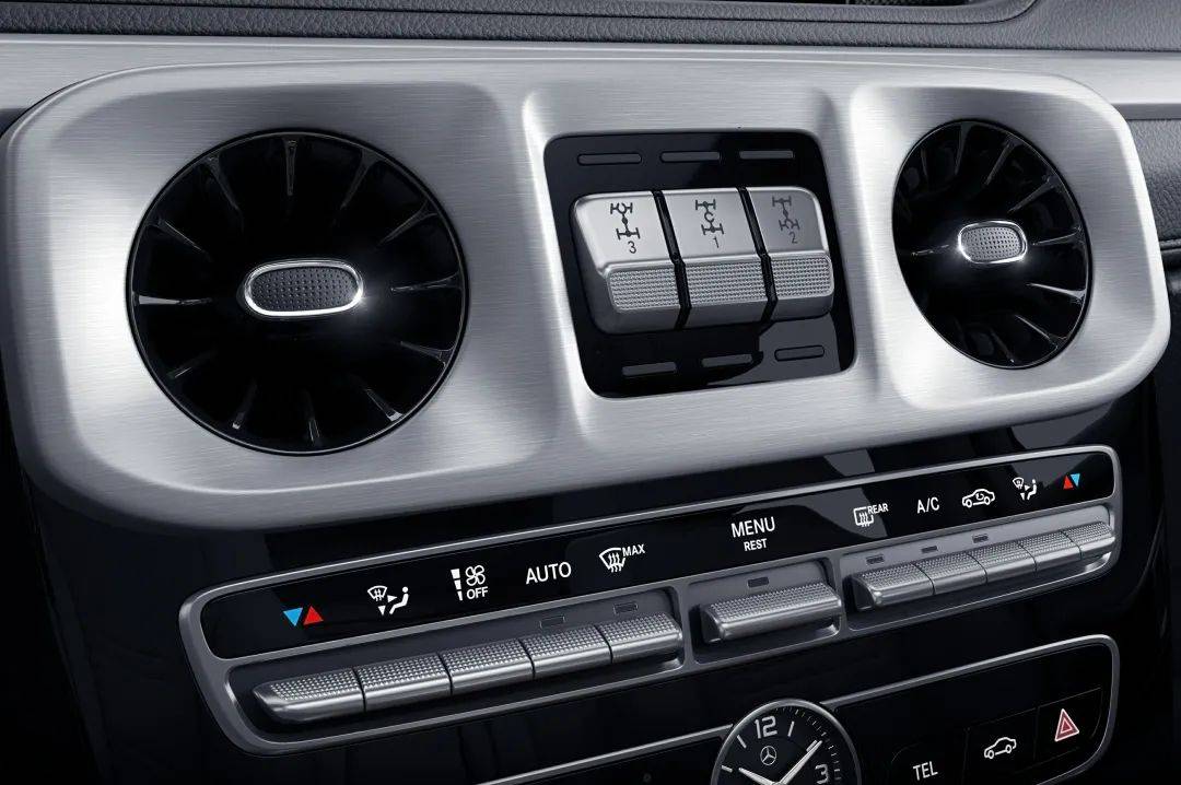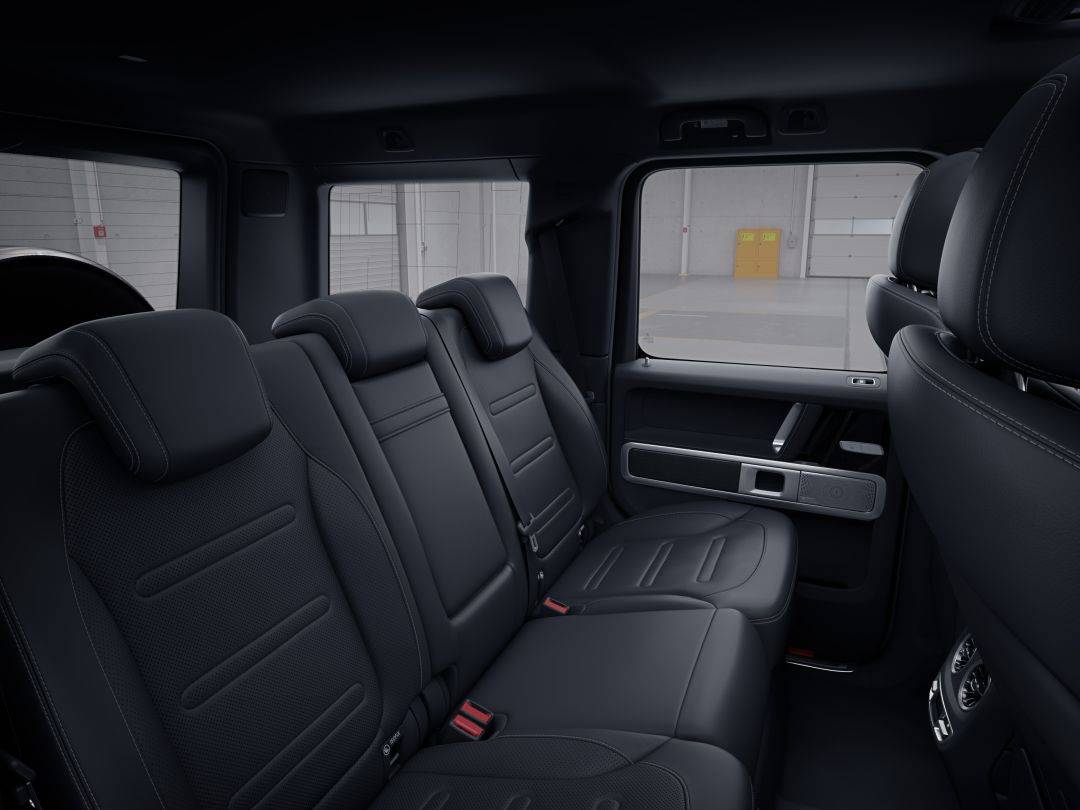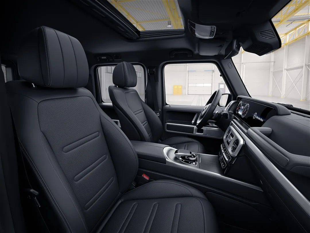 与G 500相同,新G 350在内饰中使用“感性•纯粹”的家族设计语言。双12.3英寸的高清显示屏凸显科技感和时尚感,与副驾座前方的抓手、三个镀铬差速锁开关等硬派越野元素和谐共存。标配的64色环境氛围照明系统和带有16个高性能扬声器的Burmester®环绕立体声音响系统,让缤纷光影与动人旋律在旅途中一路相随。由ARTICO皮革包裹的仪表台、方向盘和精致的缝线等细节,体现了高超的精湛手工技艺。