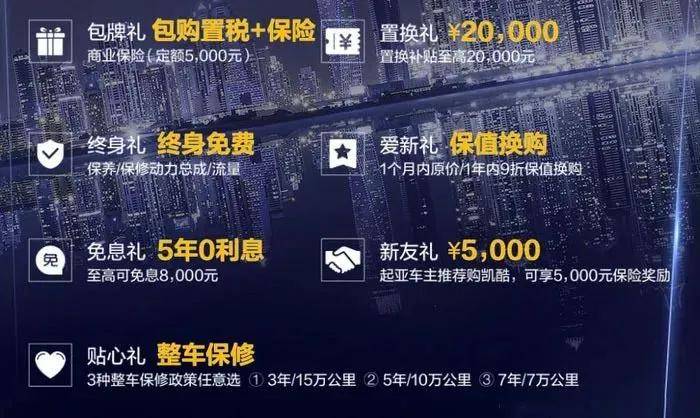 但是你完全不用担心内心个性化的需求无法被满足,因为凯酷采用了一种创新的上市售卖理念。第一是指导价就等于落地价;第二推出了7重的购车礼包;第三推出了个性化选择的选装包。