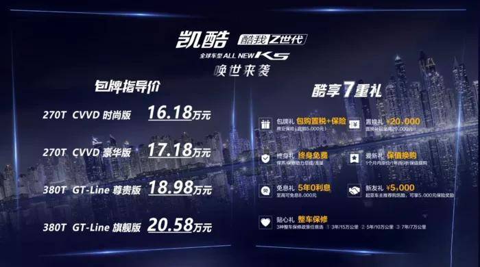 2020年09月10 17:38 来源:蜀锦传媒经历了漫长的造势和准备后,全新一代东风悦达起亚K5凯酷在9月7日完成了正式的上市。新车的价格与之前的预售价保持了一致,16.18万-20.58万元。新车提供了两种动力选择。