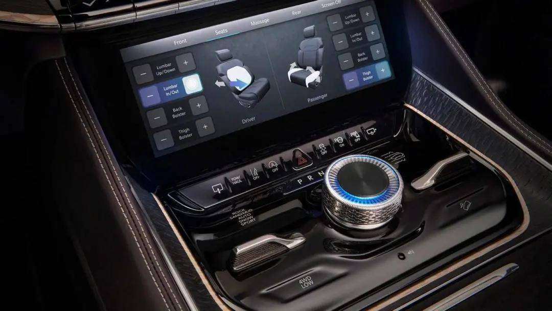 可见,Grand Wagoneer在信息化程度上一点儿也不落下风,一般来说这是大型行政车辆的配置,竟然出现在了一台非豪华品牌的SUV上面。