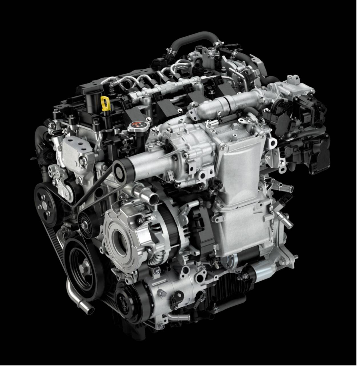 「e-创驰蓝天X发动机」兼顾了出色环保性能与动力性能,拥有马自达全球独创的「火花点火控制压燃点火技术」(SPCCI),汲取汽油发动机和柴油发动机的技术精华,突破技术壁垒,燃油经济性提升20%~30%,均质压燃,全速域扭矩提升10%~30%,是全球首款且唯一量产化的汽油压燃发动机。