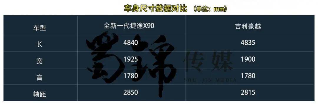 通过上图的车身尺寸数据对比,我们能够看到全新一代捷途X90在车身长度、宽度、轴距方面优势明显,轴距更是比吉利豪越,足足长了40mm。