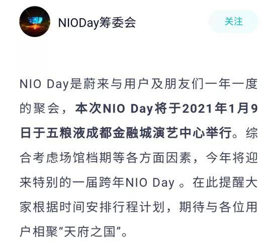 近日,蔚来官方发布消息称,2020年NIO Day(蔚来日)定于2021年1月9日在五粮液成都金融城演艺中心举行。参考此前的消息,蔚来有望于此次NIO Day正式发布ET轿车。此前蔚来联合创始人秦力洪透露称,该品牌争取在2020年NIO Day发布下一代轿车,我们猜测该车或是曾在2019年上海车展亮相的ET Preview概念车的量产版本车型——ET轿车,但官方尚未证实这一消息。