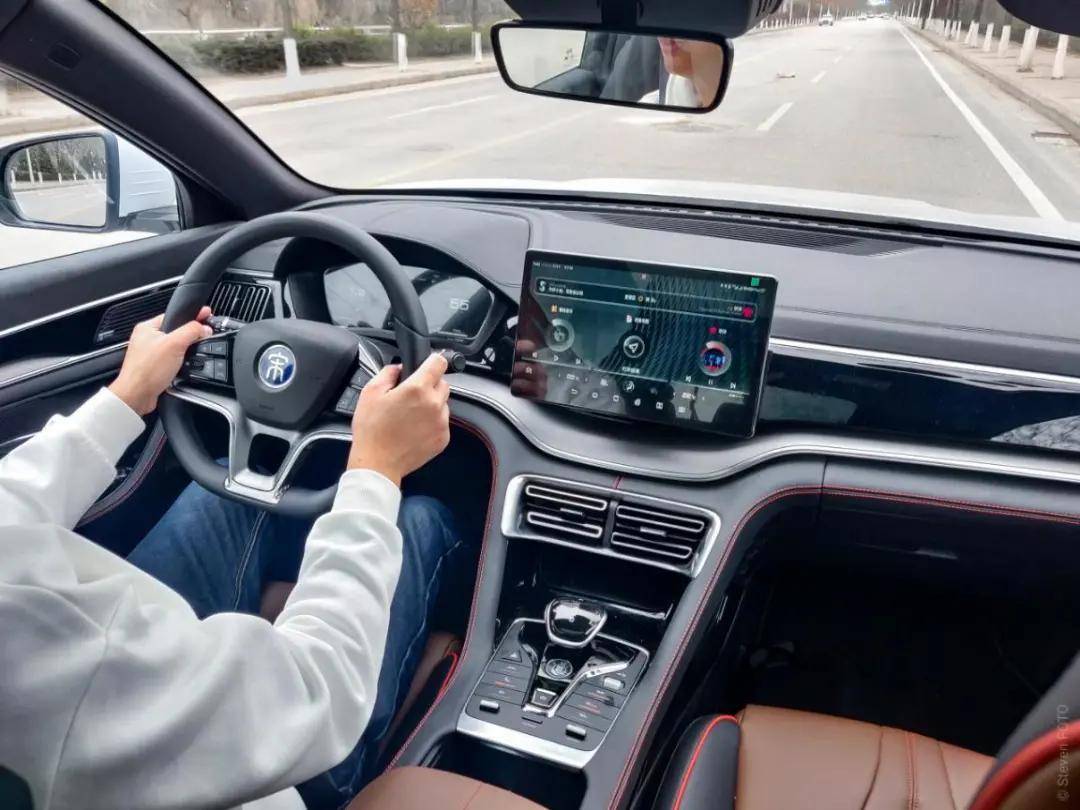 不过总体而言,宋PLUS是很好开的,它的方向盘的手感是偏重的设定,油门和踏板都很轻盈,刹车的脚感尤为舒服。整车的底盘还是很有质感的,偶尔有些颠簸会让它产生多余抖动,但总体来说,是厚重的。其实宋PLUS的整体调校就是偏德系味道的,这可能跟比亚迪与奔驰的合作有关。