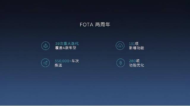 2020年11月03 16:18 来源:蜀锦传媒近日,蔚来FOTA远程固件升级迎来上线两周年。从2018年上线至今,蔚来FOTA已经实现了39次版本迭代,覆盖品牌旗下全部4款量产车型,新增131项功能,优化280项功能,已累计推送超过35万车次。10月10日蔚来通过FOTA推送领航辅助功能。