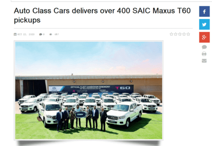 在中东市场,上汽大通MAXUS皮卡凭借澎湃的动力性能、强大的越野性和承载能力,迅速抢占发展先机。8月发运卡塔尔的400台上汽大通MAXUS T60已在10月正式交付卡塔尔Point Junction Company,这是有史以来中国品牌皮卡于卡塔尔市场的最大单一车型订单。