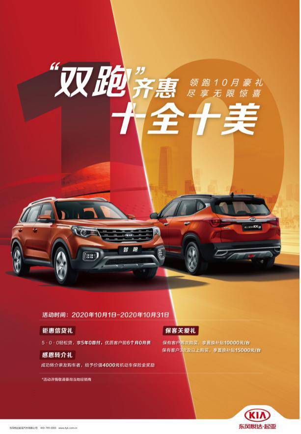 在东风悦达起亚不断发展自身技术储备和加强品控管理的情况下,起亚智跑汇集企业技术优势,凭借丰富的配置与出色的品质保证为消费者提供了一份省心又安心的购车选择。同时10月31日前购买起亚智跑,还将享受“5·0·0轻松贷”政策:5年0首付,前6个月0月供的巨额优惠,以诚意售价为大家呈现出富有品质感的出行体验。