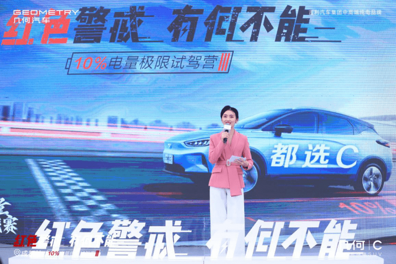 此次“红色警戒 有何不能—10%电量极限试驾营”,是行业首个剩余10%电量极限测试,通过此次10%电量极限试驾营,几何C实际续航里程为83.4km,对比友商10%剩余电量跑出42.6km(结合实测成绩),几何C 真续航能力得到体现。得益于几何自主研发的SEM智能能量管理系统打通三电技术通道,让几何C能够真正解决用户的“里程焦虑”痛点问题。同时,在真实的情况下,通过此次活动,也让到场嘉宾感受几何C所带来的魅力科技。