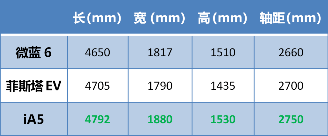 我们选取了售价相当的三个配置车型作为对比对象,iA5选择的是售价19.28万的尊贵版,菲斯塔纯电选择的是售价18.88万的智捷版,微蓝6选择的是售价18.98万的互联智享型PLUS版,差价不超过5000块。