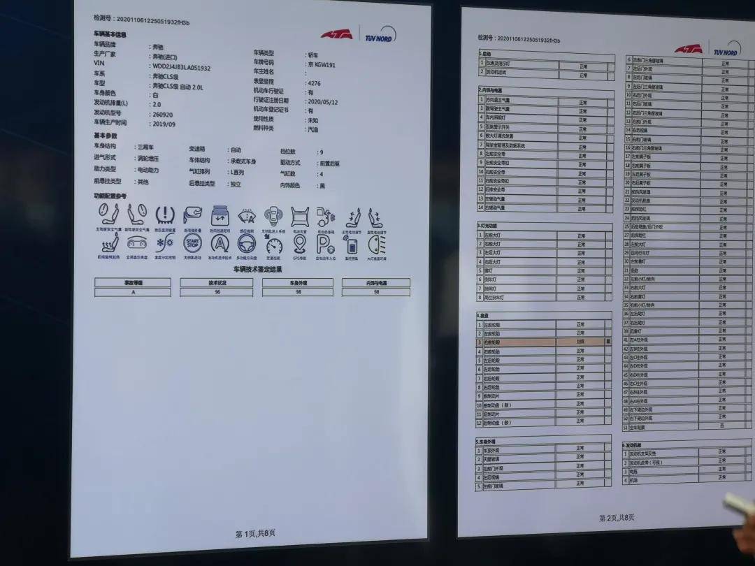 一辆奔驰CLS新车进入激光智能检测设备进行检测,仅需十多分钟检测报告单便能出炉。而从报告单来看,车身各个细节都有所检测,最后检测出了右前轮毂有轻微刮痕,由此可见这套系统的精准性。