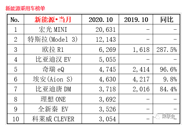 宏光MINIEV10月再度蝉联中国新能源销冠