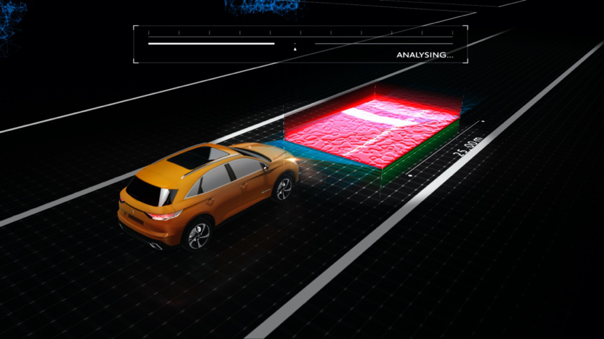 DS7越级配备的DS魔毯自适应悬架系统可通过实时扫描分析前方路况,并在15毫秒内预先完成悬架软硬程度的调整,即使行驶于颠簸路段,DS7也能为驾乘者创造如履平地的体验,让驾乘舒适一路随行。