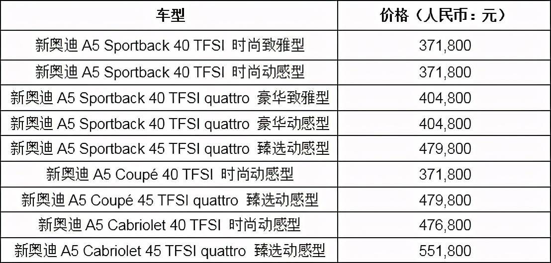 2020年11月17 16:23 来源:蜀锦传媒2020年11月13日,新运动美学豪华B级轿跑车——新奥迪A5 家族于杭州良渚文化艺术中心正式上市,市场指导价区间为37.18万元-55.18万元。新奥迪A5家族涵盖了四门Sportback、双门Coupé及双门Cabriolet三种车身形式共9种车型版本,为独具品味的年轻消费者提供多元化、个性化用车选择。