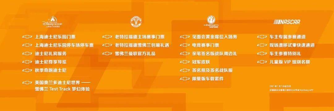 在15年的发展历程中,雪佛兰始终以“客户至上”为宗旨,深入洞察客户需求,致力于为客户带来更优质的用车体验。本次金领结之夜公布的50项车主特权,包括4大类别7大系列,涵盖迪士尼、曼联、iG战队等多个品牌知名合作伙伴的平台资源以及U·CLUB会员特权和各类官方活动体验权益。雪佛兰车主可以兑换上海迪士尼门票,尊享迪士尼贵宾服务,还能收获独家放送的秋季奇跑迪士尼名额;此外,2020-2021赛季曼联英超主场比赛的门票、iG战队电竞赛事门票都为你准备就绪;而由雪佛兰官方主办的陆上飞行秀、直通NASCAR挑战赛等系列活动也为车主量身定制了亲临现场的席位。只要成为雪佛兰车主,你就可以加入U·CLUB车主俱乐部,享受各类用车、养车礼遇;不仅如此,各大知名视频网站、在线音乐的会员权益及四大车展门票,都将让你的生活变得丰富多彩。从2021年1月1日起,雪佛兰50项车主特权将正式生效。届时,广大雪佛兰车主将切实感受到专属于他们的荣誉感和归属感,尽享与雪佛兰相伴的更多乐趣。