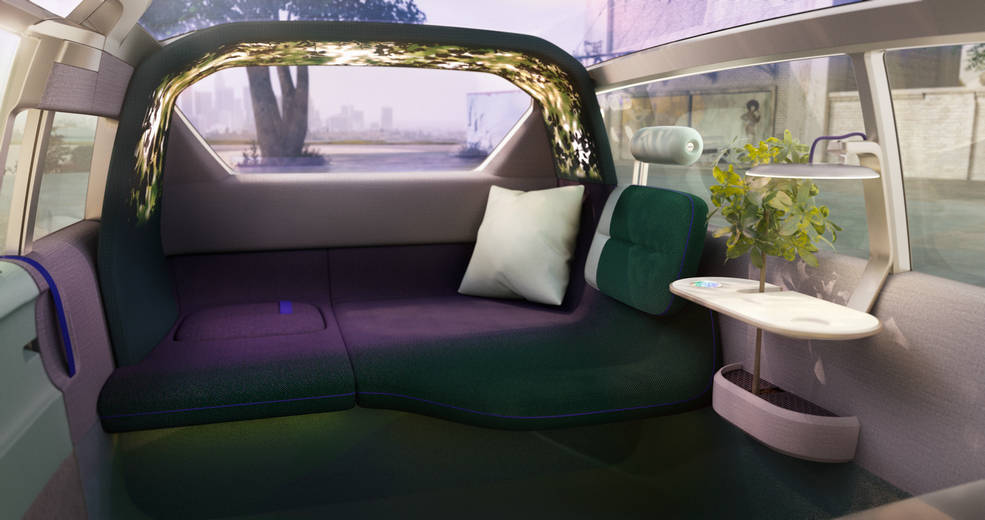 作为未来城市出行的思考者,MINI VISION URBANAUT概念车坚持高效使用资源。除了最大化利用车内空间,采用全电驱系统外,MINI VISION URBANAUT概念车还着力减少外观和内饰设计中所使用的部件数量,并实现仪表盘和沙发床等部件的一物两用。该车也使用可回收材料,确保设计中不使用铬和皮革。内饰主要材料是织物,让驾乘者感觉温馨惬意的同时也保证了柔软舒适的质地。方向盘和局部地板采用软木,天然材质令车内空间独具一格。