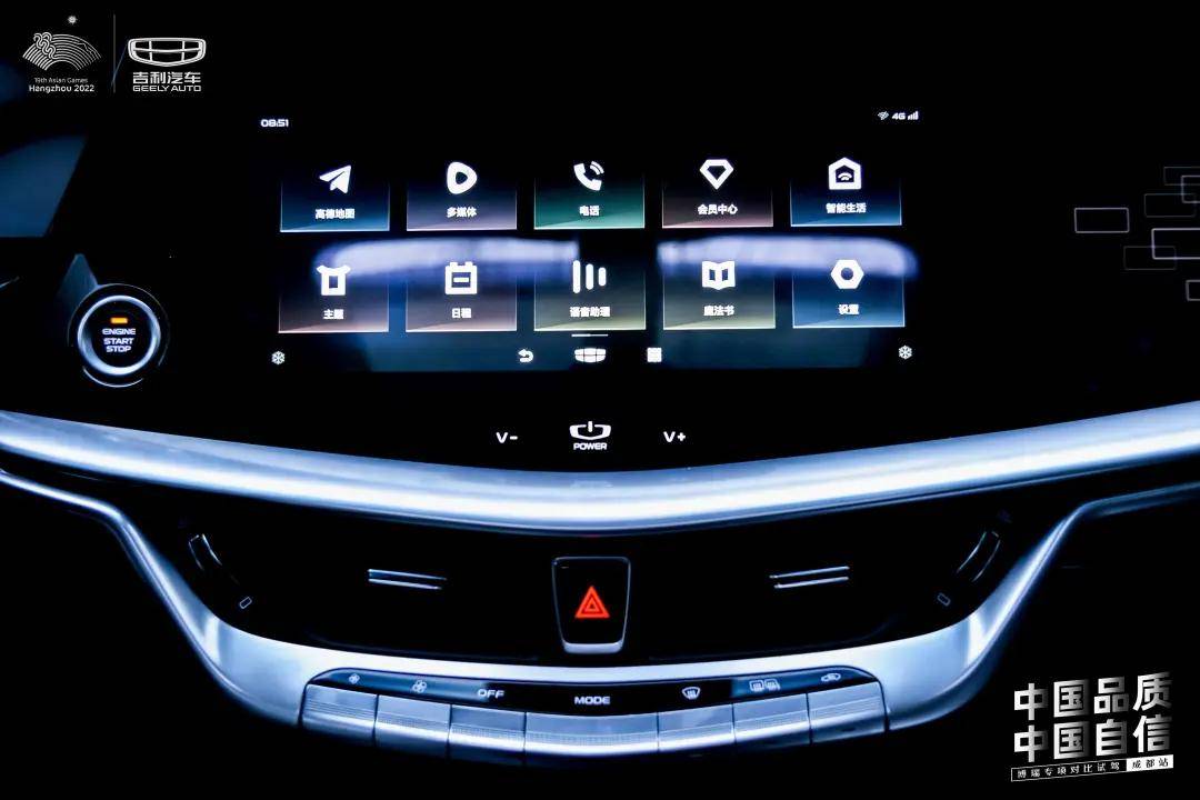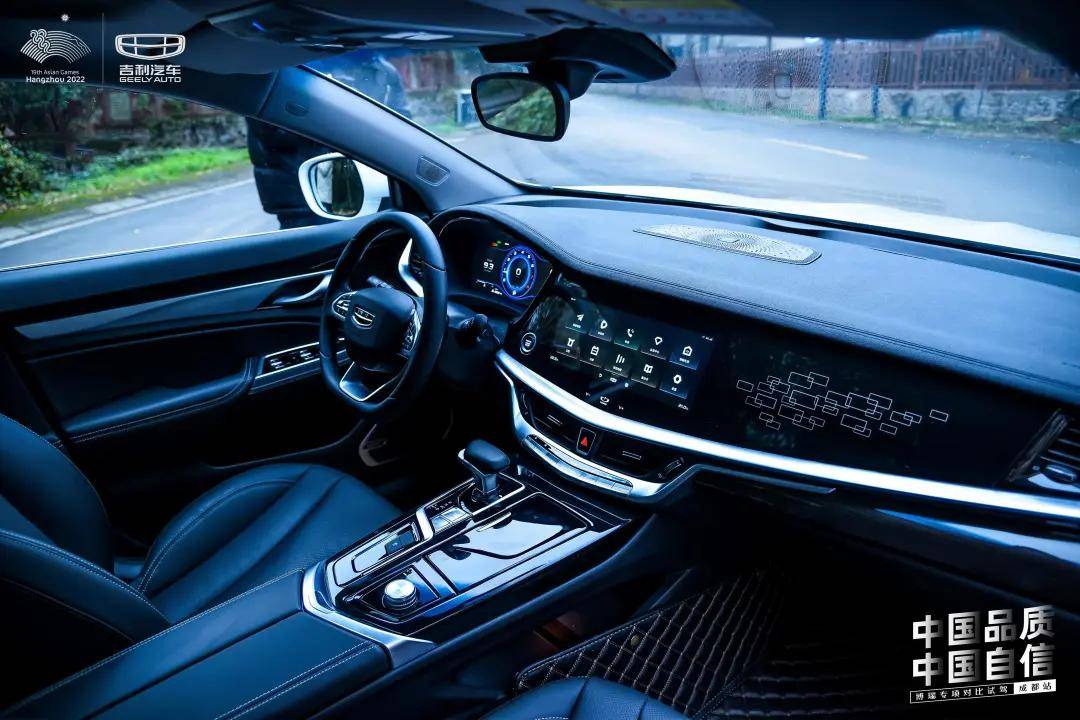 全新博瑞的内饰用很大一块钢琴烤漆面板装饰,上面嵌了一块12.3英寸的液晶屏幕。钢琴烤漆面板下方有一根镀铬饰条左右贯穿,连接两边的空调出风口。中控地台区域的档把和旋钮也经过了精心的设计。整个车厢精细的做工和考究的用料让博瑞的内饰看起来足够精致,非常具有品质感和高级感,完全不像一台十二三万的轿车。