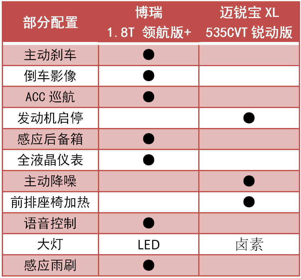 博瑞的指导价是14.68万—15.18万,目前在终端市场有着大约2万元的优惠,所以它的实际售价区间在12.68万—13.18万。于是博瑞和迈锐宝XL便有着很明显的价格重合,所以对于预算15万内买B级车的消费者来说,博瑞和迈锐宝XL之间自然就得有个比较。