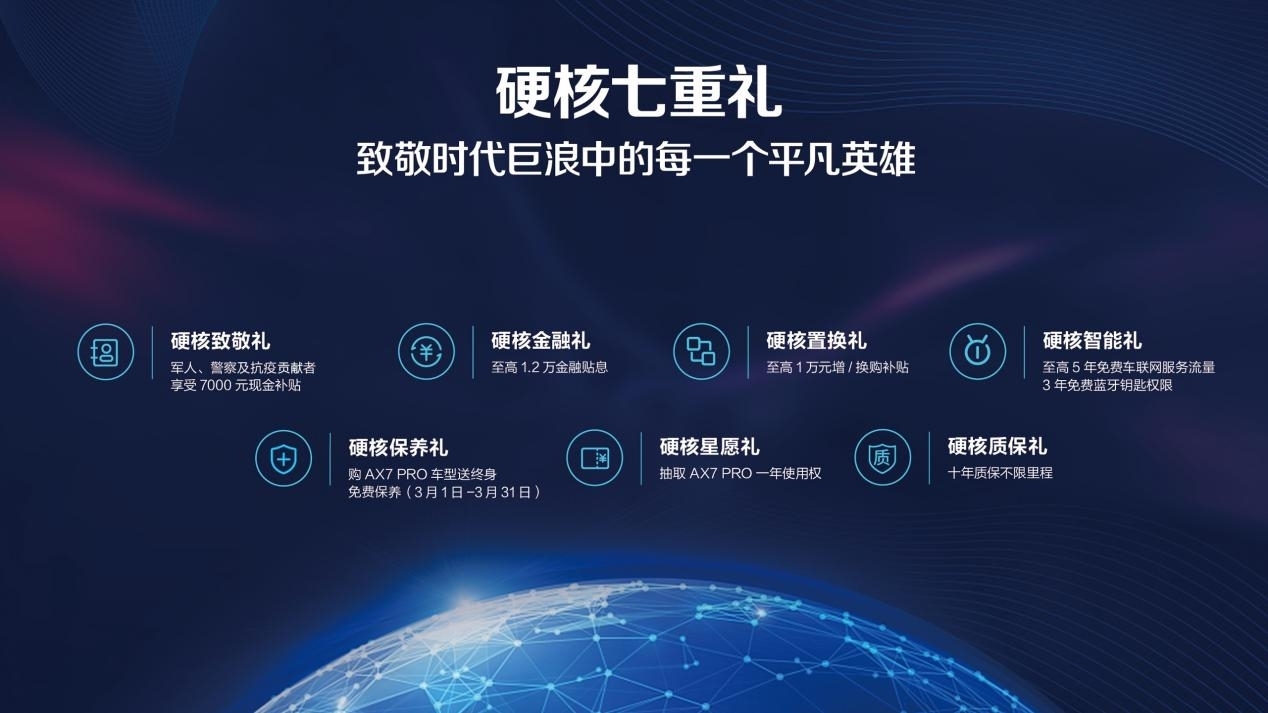 此外,东风风神AX7 PRO不仅至高12000元贴息的硬核金融礼回馈所有消费者,更提供至高5年免费车联网服务流量及3年免费蓝牙钥匙权限的硬核智能礼;而十年质保不限里程的硬核质保礼也能让用户免除用车后顾之忧。此外,在3月1日至3月31日内购车更可享终身免费保养的硬核保养礼;老客户则可享受至高10000元的硬核置换礼,轻松切换AX7PRO。