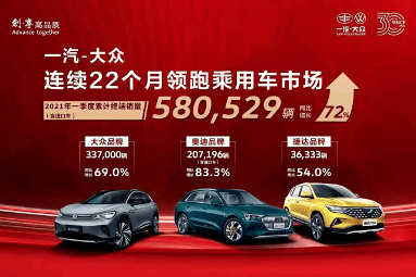 截止2021年3月,一汽-大众连续22个月领跑乘用车市场