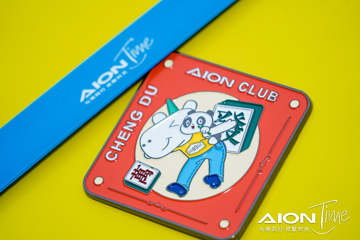 刚到集合点,就看到有人在给广汽埃安贴车贴,同时川府车友会的城市会标也吸引了我,后面打听过后才知道,这枚会标是埃安车主根据城市特点自己设计了。四川的风格加上四川的元素,也就有了现在的成品。