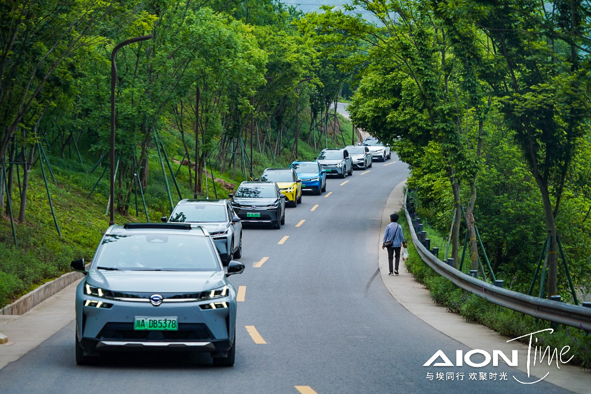 活动的集合地址是在,景区西门旁的停车场里,道路两旁停着一辆辆广汽埃安,着实是一道靓丽的风景线,不用问也知道自己找到了组织。