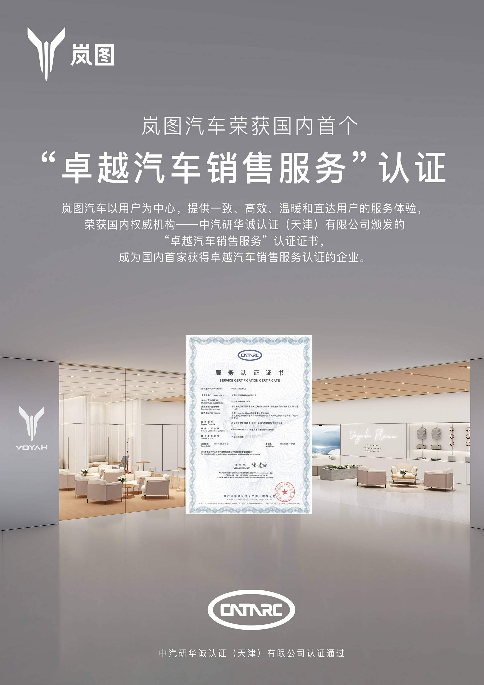 全国首家!岚图汽车获中汽研华诚“卓越汽车销售服务”认证