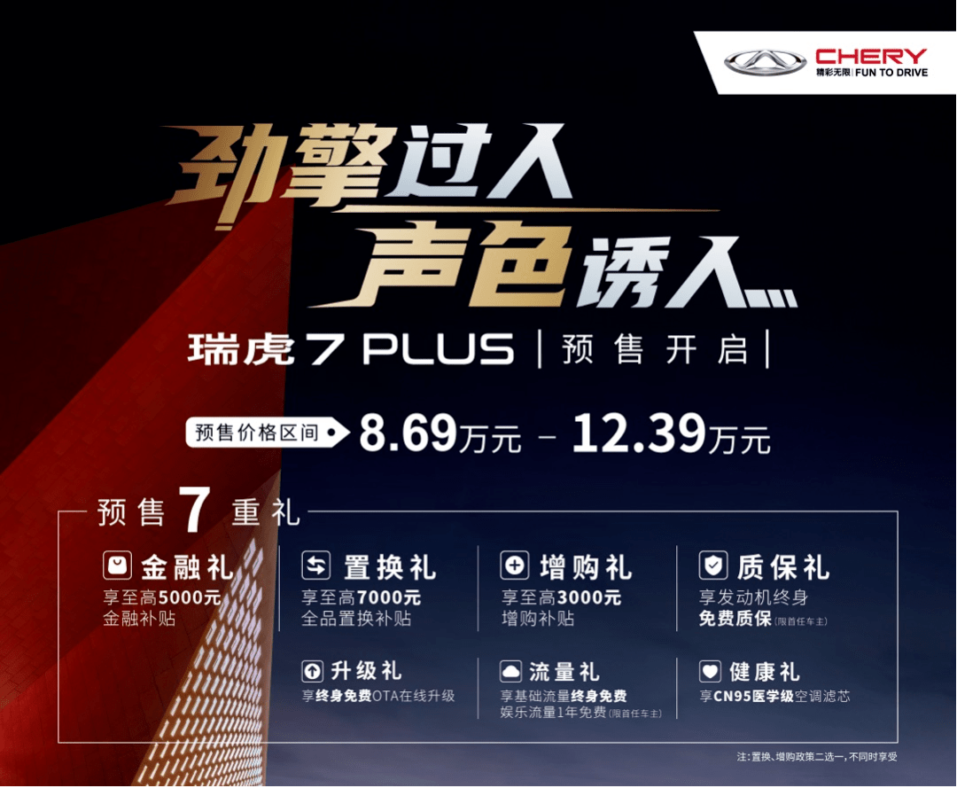 年轻派智趣SUV瑞虎7 PLUS开启预售 8.69万起享7重礼
