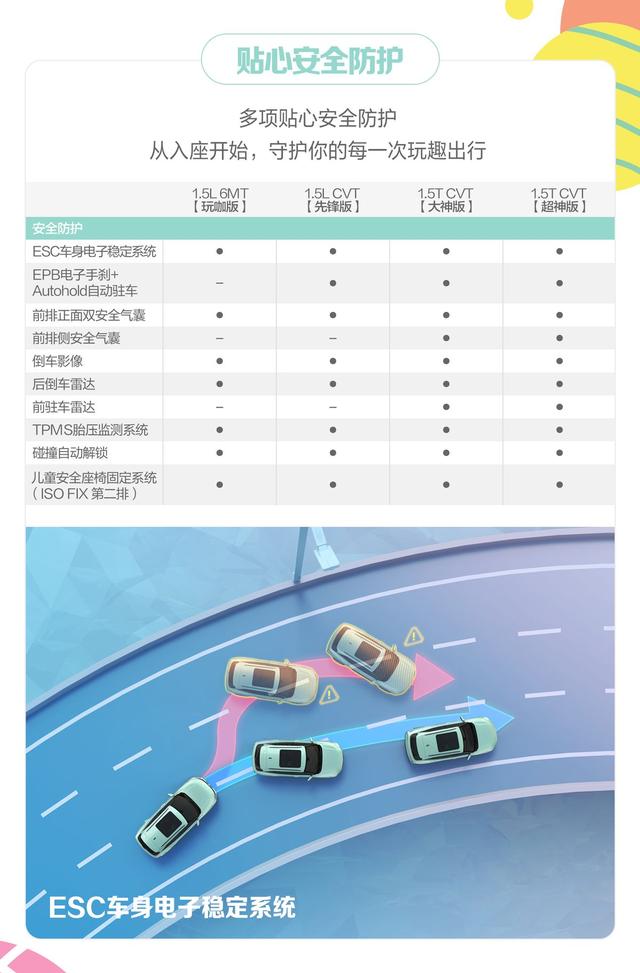 安全性能方面,RS-3 SOODA以更多越级配置为Z世代青年护航。整车采用超高强钢笼式车身设计,全系标配双安全气囊、倒车影像、后倒车雷达、TPMS胎压监测等配置,以及ESC车身电子稳定系统、TCS牵引力控制、HBA刹车辅助、HHC上坡辅助等丰富功能,主被动安全加持更全面、周到。