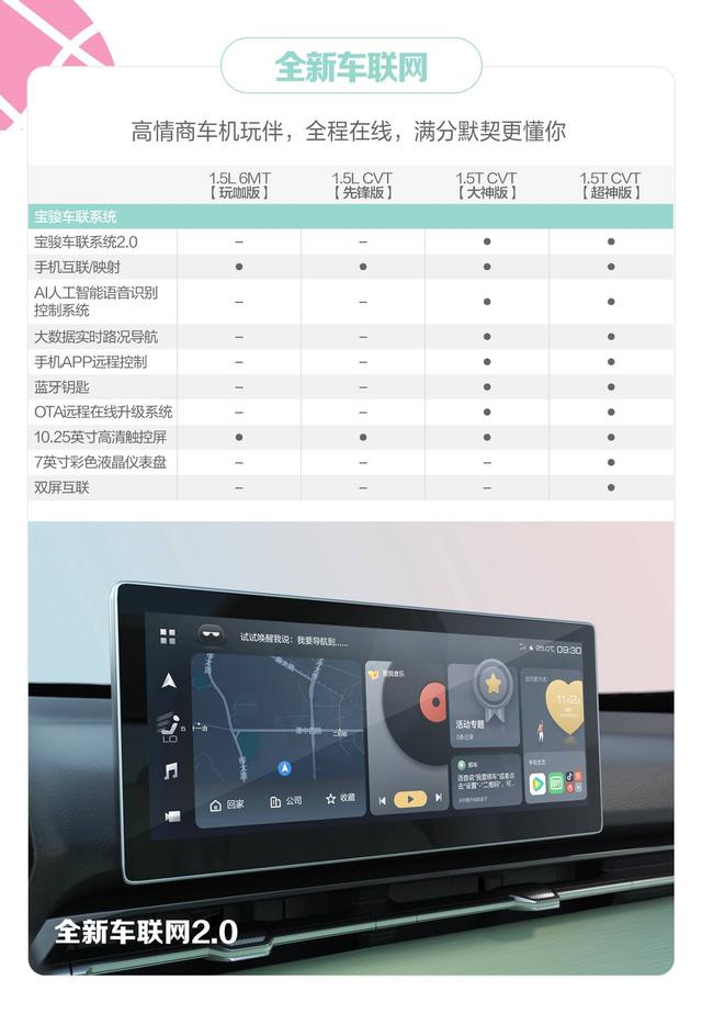相比同级小型SUV,RS-3 SOODA依托宝骏汽车智能基因优势,为Z世代青年带来更多科技趣味。新车配备10.25英寸高清触控屏,内置全新2.0版宝骏车联网系统,新颖UI界面带来更快速便捷操作;手机互联升级后,远程控车更精准、功能更实用;AI人工智能语音识别控制系统则更为顺畅,智慧服务更全面,让年轻人在智趣中获取“智”能量。