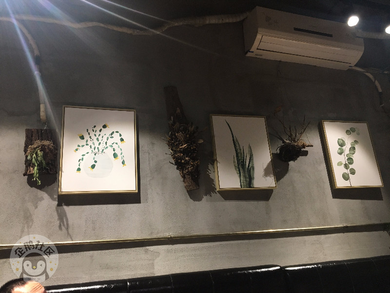 烤肉店的某一面墙,装修风格我觉得是有点工业的感觉但是喃又感觉小清新,简单的,左下角的抬头纹稍微有点抢镜了