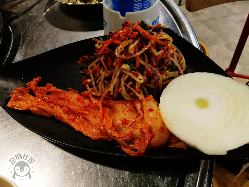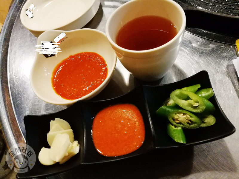 朋友还没来,我就说等一下再点单,嬢嬢就端了蘸碟、小菜那些上来。不得不说,有好感是从蘸碟开始的,,居然不是接地气的海椒面+小米辣+烤肉酱的三碟组合了(不得不说那些歪店的这个组合,我真的有点受不了),只有一个烤肉酱,小小的一碟,无限量供应。