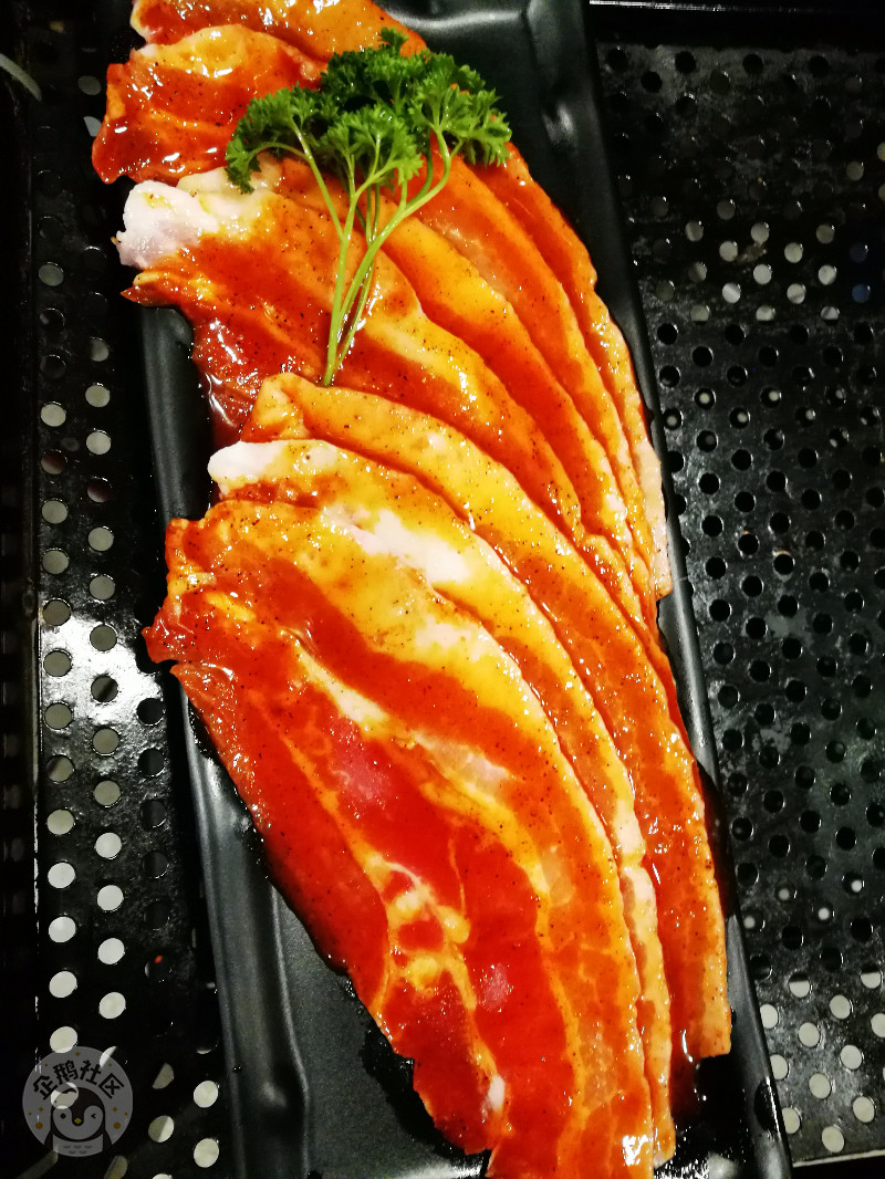 这是特五花哈,也就是大家喊的厚切五花。嬢嬢会帮忙烤熟了之后用剪刀剪成一坨一坨的。 -
