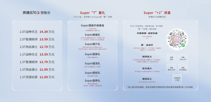 11.09-14.39万元 一汽奔腾B70S线上拆盲盒、Super“7”重礼惊喜预售