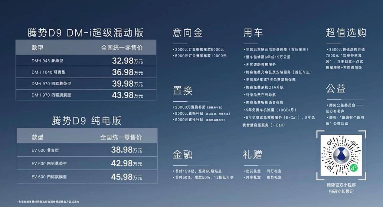 面向高端新能源MPV市场,腾势D9震撼上市,售价32.98万起!