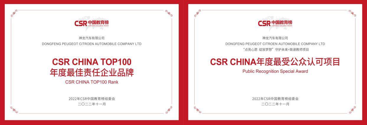 神龙汽车连续三年被CSR中国教育榜评选为“年度最佳责任企业品牌”
