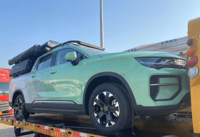 日前,我们在广州车展前方拍摄到了雷达RD6改装车,新车加入了全新的车身涂装样式,前部为绿色,后部渐变为白色。此外,我们注意到,新车尾部加装了疑似露营装备,疑似是一台营地车。