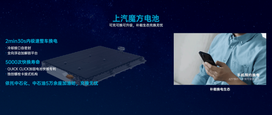【上汽魔方电池“换电补能”】